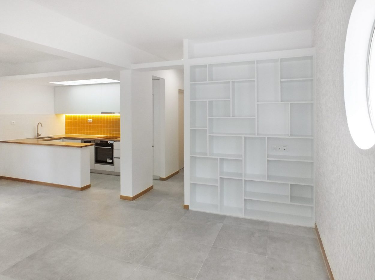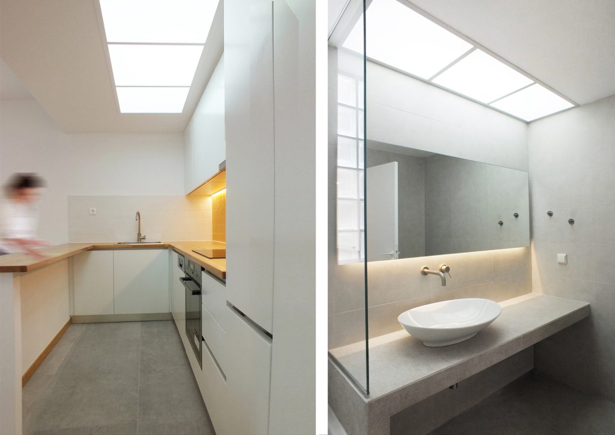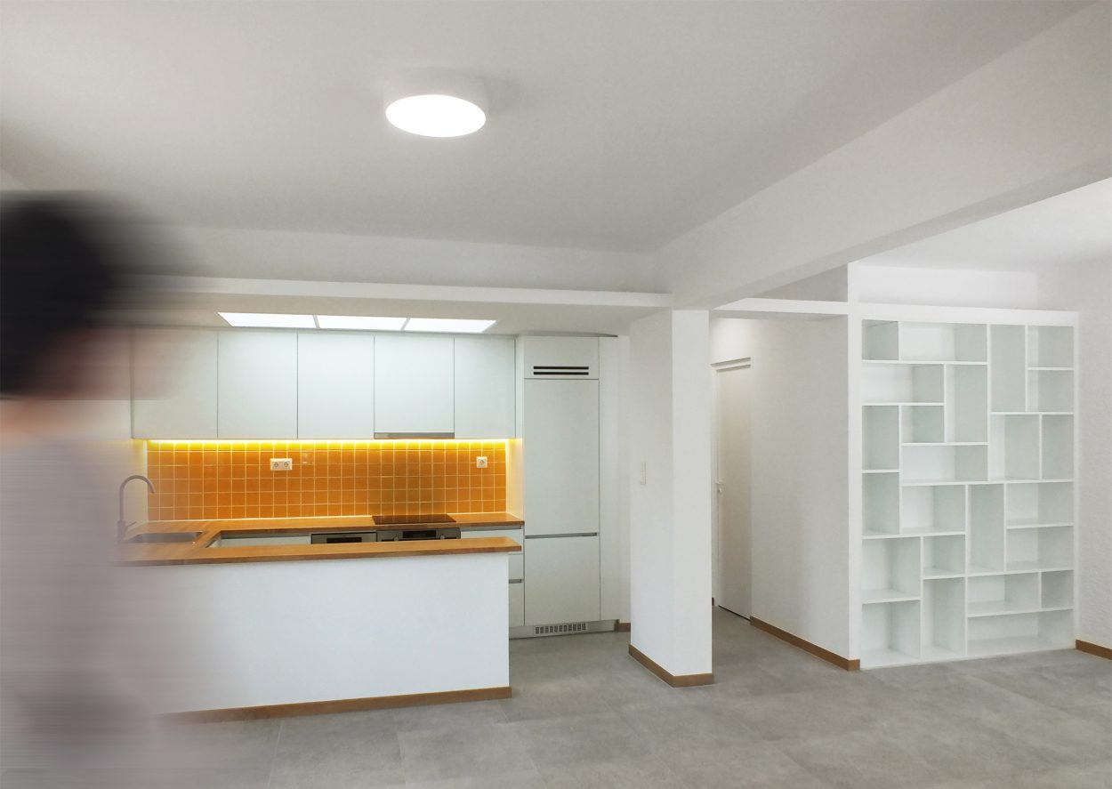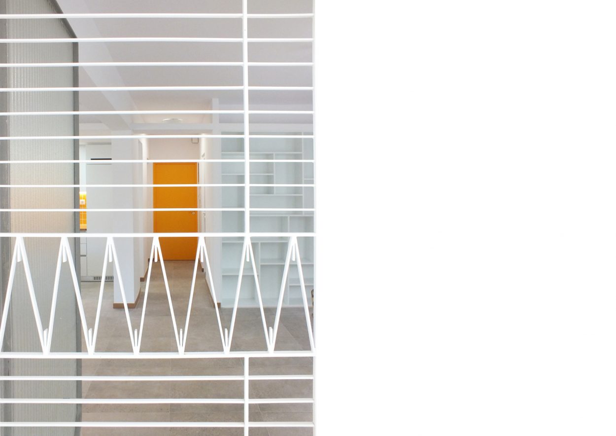 The house, build during 1972, is a typical for the era, detached structure surrounded by a courtyard. Several features on its exterior – telling of the 60’s and 70’s idiom used on the era’s suburbia housing- were utilized as a starting point, for the unfolding of the inner spaces. Complex ironworks on the openings, circular windows and corduroy glasses were used, with the main material focus of the interior, centered around a newly applied, handcrafted artifisiel wall, framing the view of an existing tree on the outer courtyard.